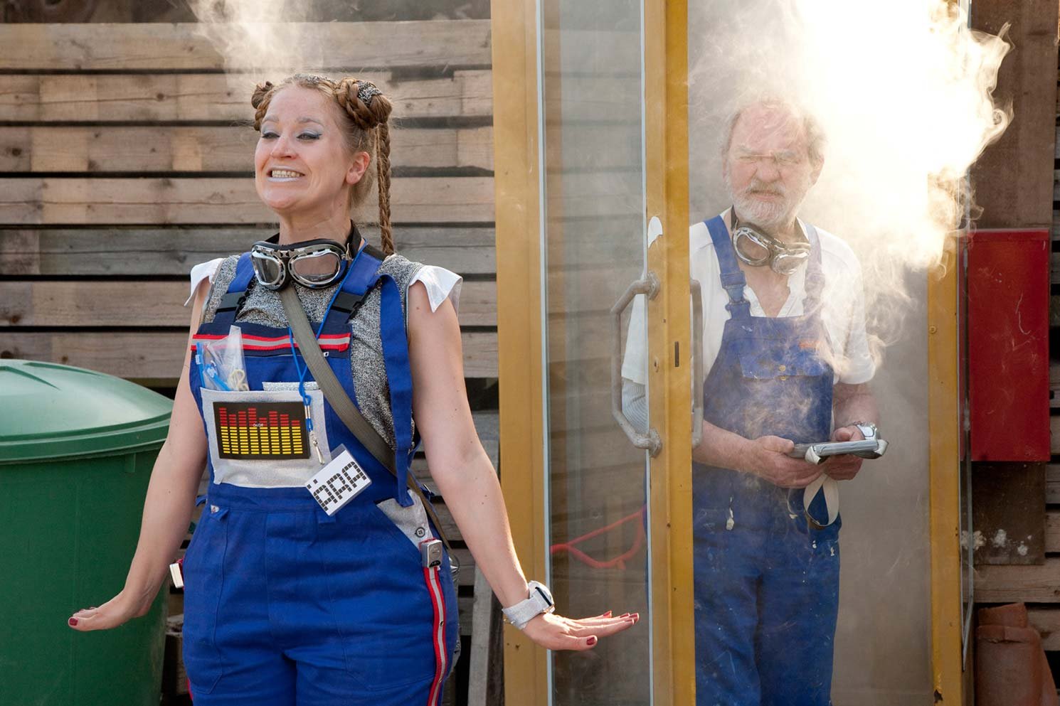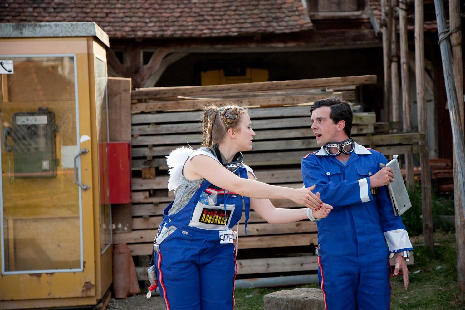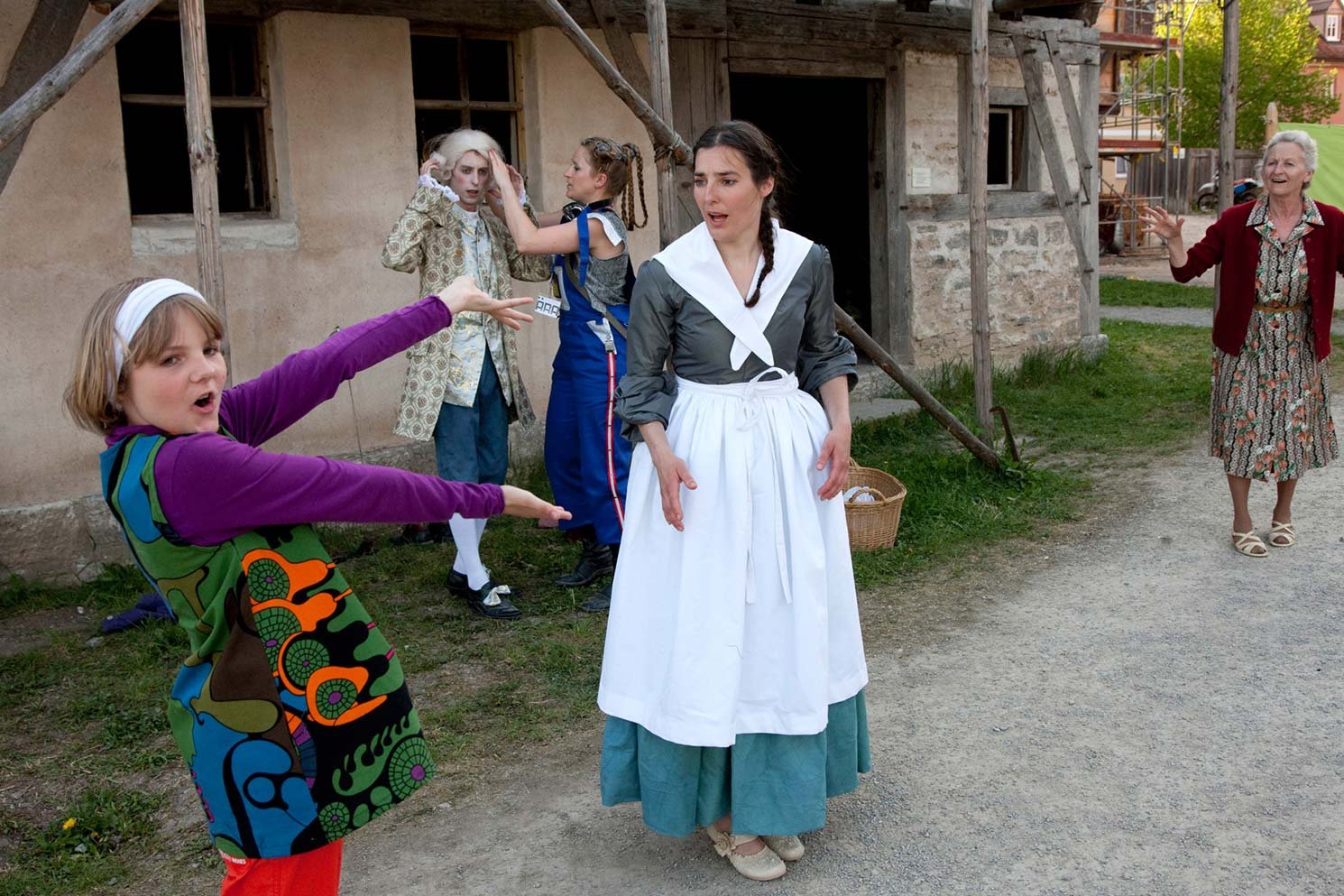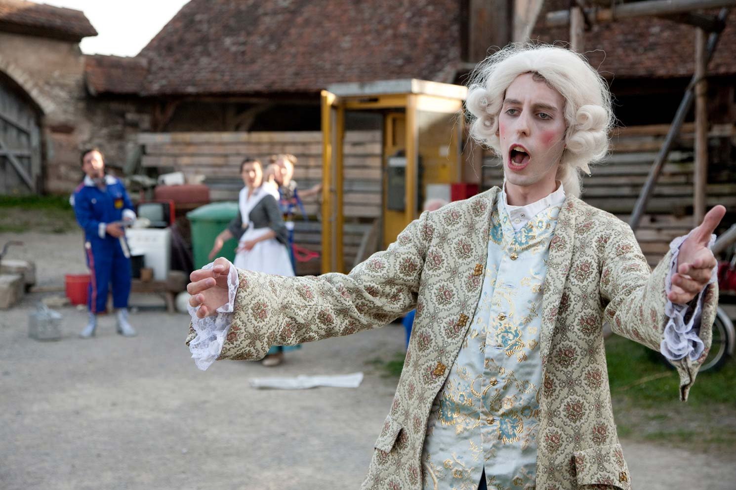 In der Produktion für Kinder ab sechs Jahren geht es um zwei Zeitreisende aus dem Rokoko, die durch ein Experiment im 20. Jahrhundert landen und dann ihre lieben Not damit haben, wieder in ihre Zeit zurück zu kommen.